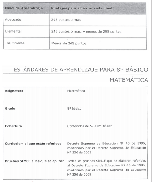 En Chile, el trabajo de elaboración de estándares de aprendizaje se inició luego de que en el año 2000 se publicaran los resultados del Sistema de Medición de la Calidad de la Educación (SIMCE) de 4º básico y los del Trends in International Mathematics and Science Study (TIMSS)1 de 8º básico.
