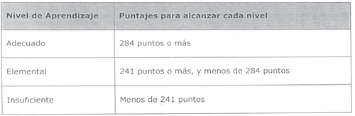 Se elaboraron tres Niveles de Aprendizaje que permiten hacer distinciones significativas entre los estudiantes que logran de manera satisfactoria lo exigido en el currículum y aquellos que no lo hacen, y dentro de este último grupo distinguir entre los que están en vías de lograrlo y aquellos que están lejos de hacerlo.
