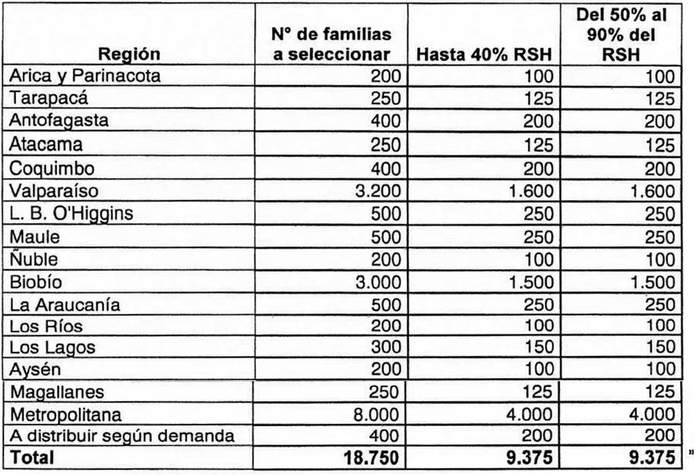 1.10. Reemplázase el resuelvo 14. por el siguiente: "14. El monto total de los recursos que se destinarán al financiamiento del subsidio en el presente llamado, conforme a las disposiciones del DS Nº 52 (V. y U.), de 2013, será de hasta 392.165 UF, correspondientes a 18.750 subsidios, los que se distribuirán según la tabla que se presenta a continuación, pudiendo practicarse mediante resolución modificaciones, o incrementos de recursos, así como ser redistribuidos en las regiones incluidas en este llamado: